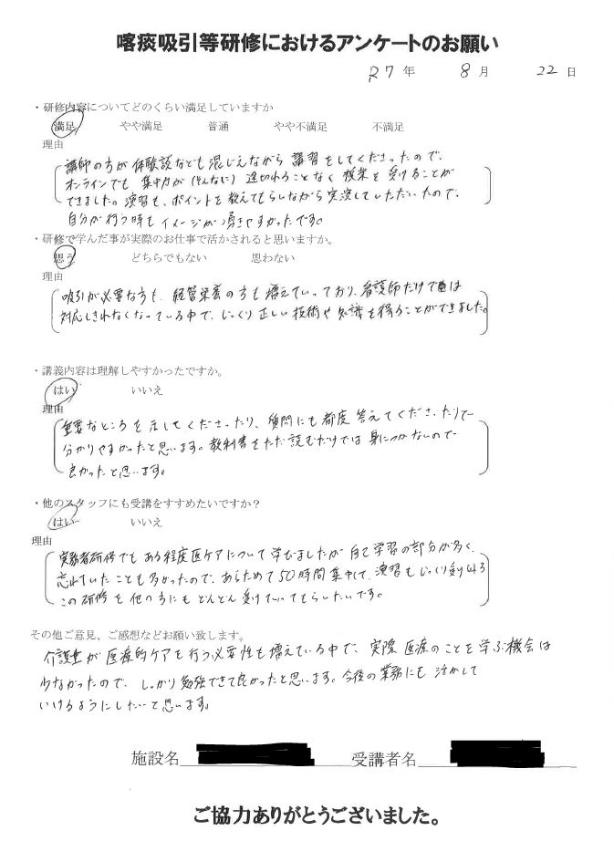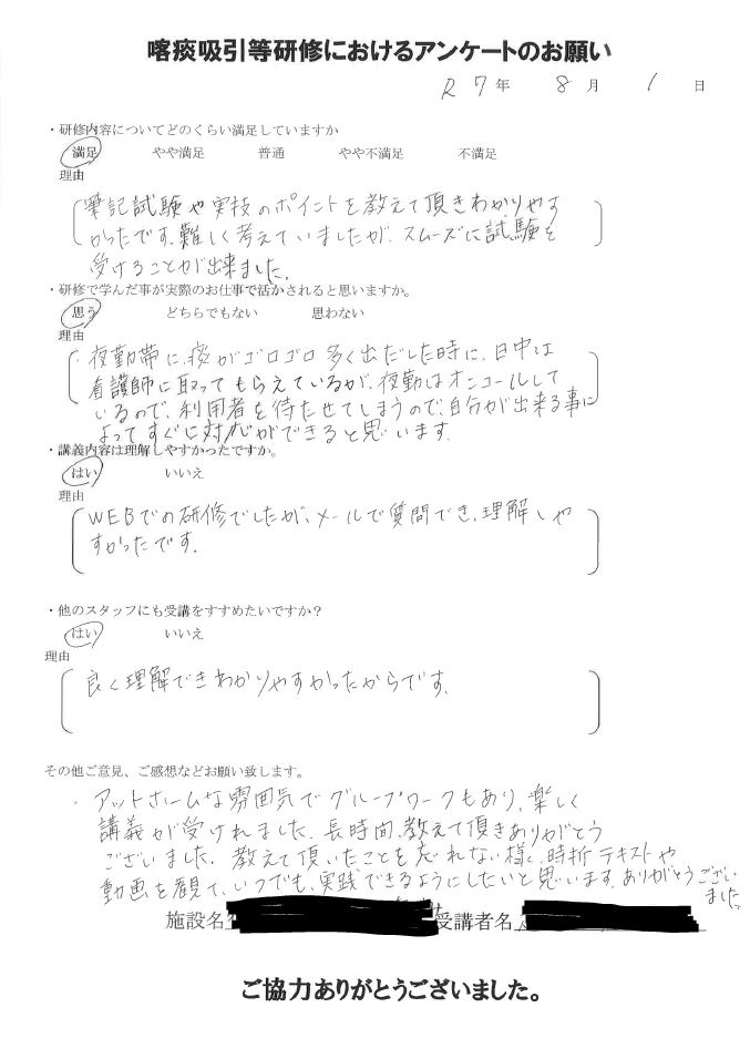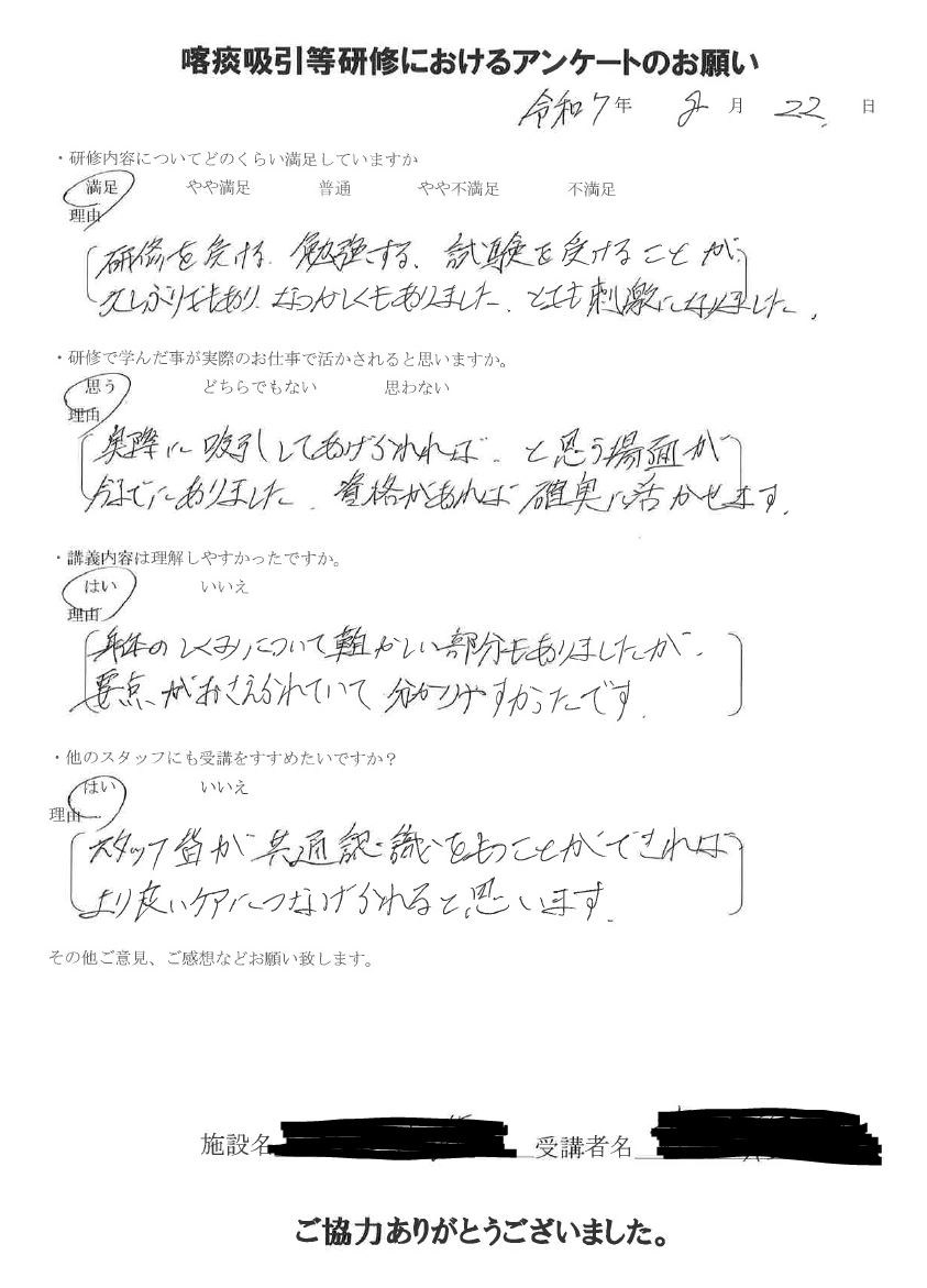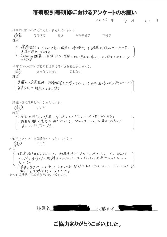 2025年8月 研修修了受講生の声(抜粋)